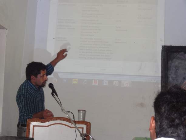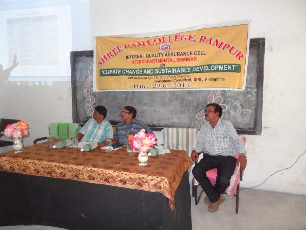 1. 1. Dr. Architesh Panda, International Consolation, international Rice research institute (IRRI), Metro Manila, Philippines addressing on interdepartmental seminar climate change and sustainable development. 2. Dr. Ashok Kumar Panda, Principal, Addressing the Seminar. 3. Sri Rameswar Naik, Reader in History Prof in charge UGC sharing his views. 4. Sri Sarat Chandra Padhan, Lecture in Economics extending vote of thanks. 5. Sri Ashwini Kumar Hota, coordinator, IQAC, addressing the seminar.